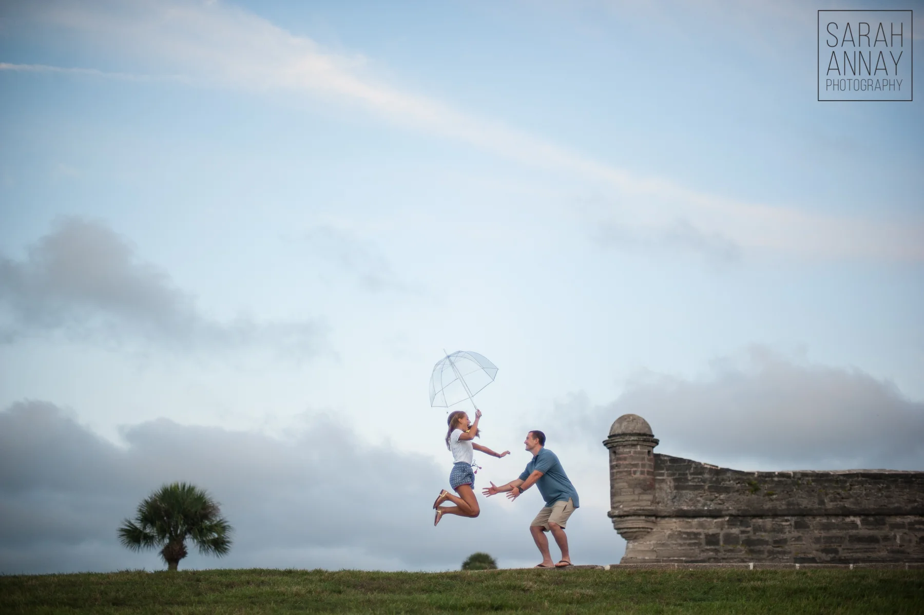 Anna contacted me SUPER excited about celebrating her one year anniversary with her husband, Michael. The two of them had never fully explored St. Augustine and she wanted our session to capture the beauty of this city. I chose Aviles Street, my "secret" garden in Old Town and the fort. It ended up even BETTER than we planned, with a pirate visitor and a beautiful sunset (after we had prepared for rain and Anna purchased an awesome bubble umbrella). Well, we decided to use the umbrella anyway. I couldn't have asked for a more fun couple and I know they spent the weekend enjoying all St. Augustine has to offer (I gave them quite a to-do list!).